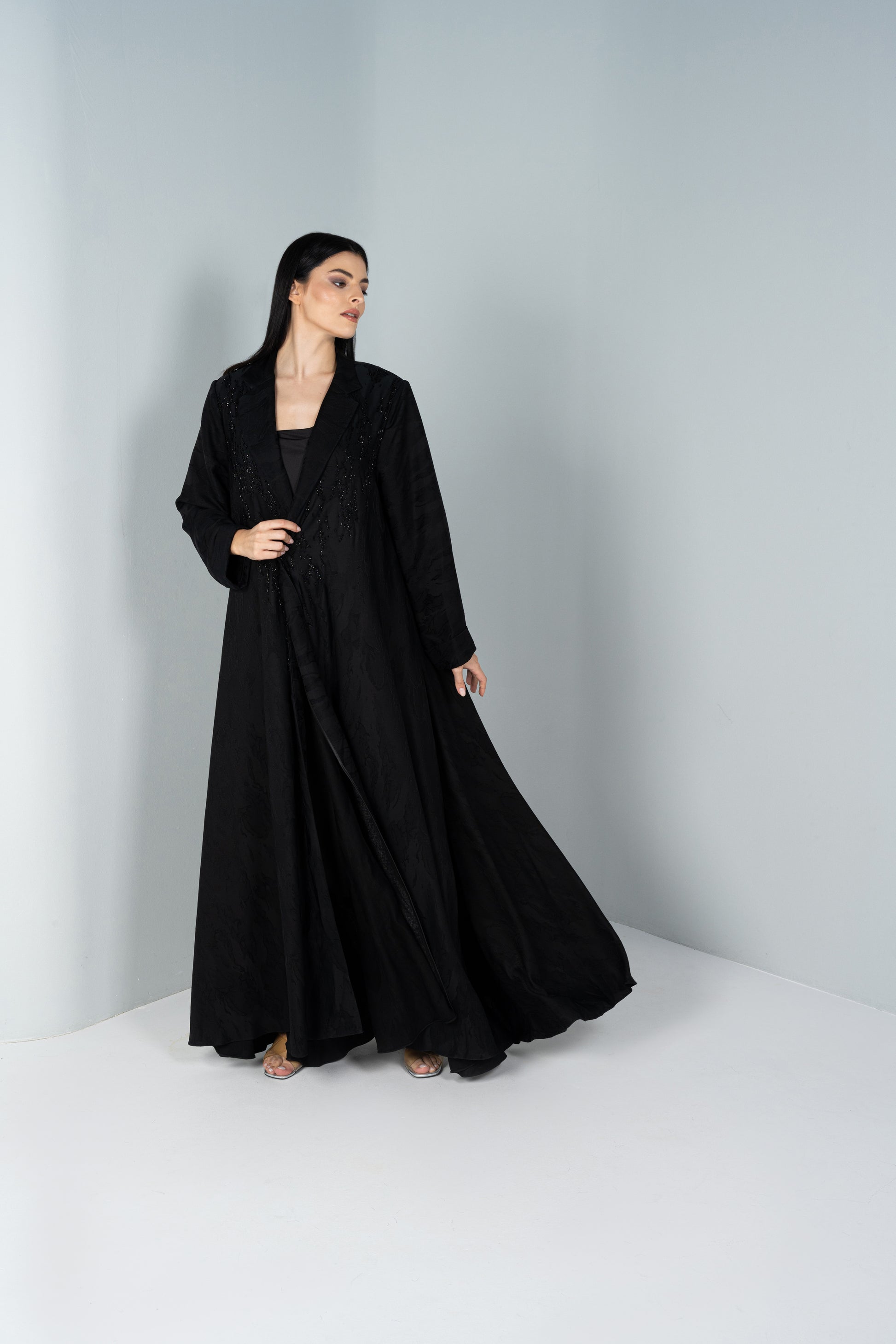 Élémentaire is an elegant piece with crystal beading all around the floury bodes